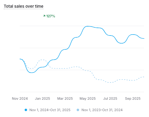 Through full-funnel creative strategy, media buying, retention systems, and on-brand UGC content, TVG helped AN grow their e-commerce channel +127% year-over-year (Nov 2024 → Oct 2025) building the foundation for long-term U.S. expansion.