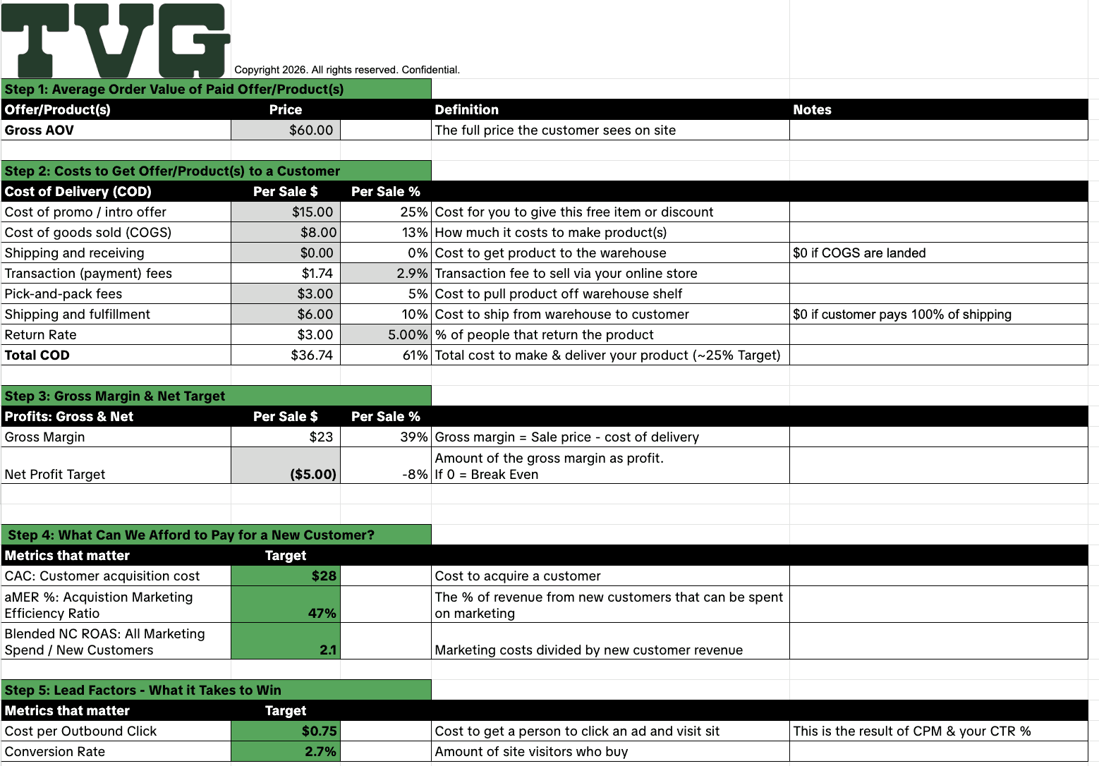 Download the exact framework used to calculate AOV, CAC, CPC targets, and conversion benchmarks before increasing ad spend so you can scale profitably, not blindly